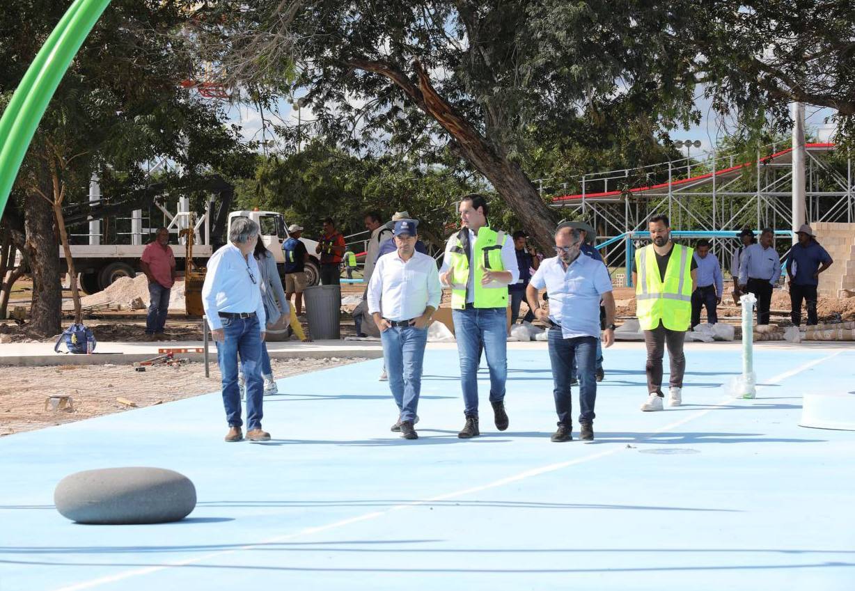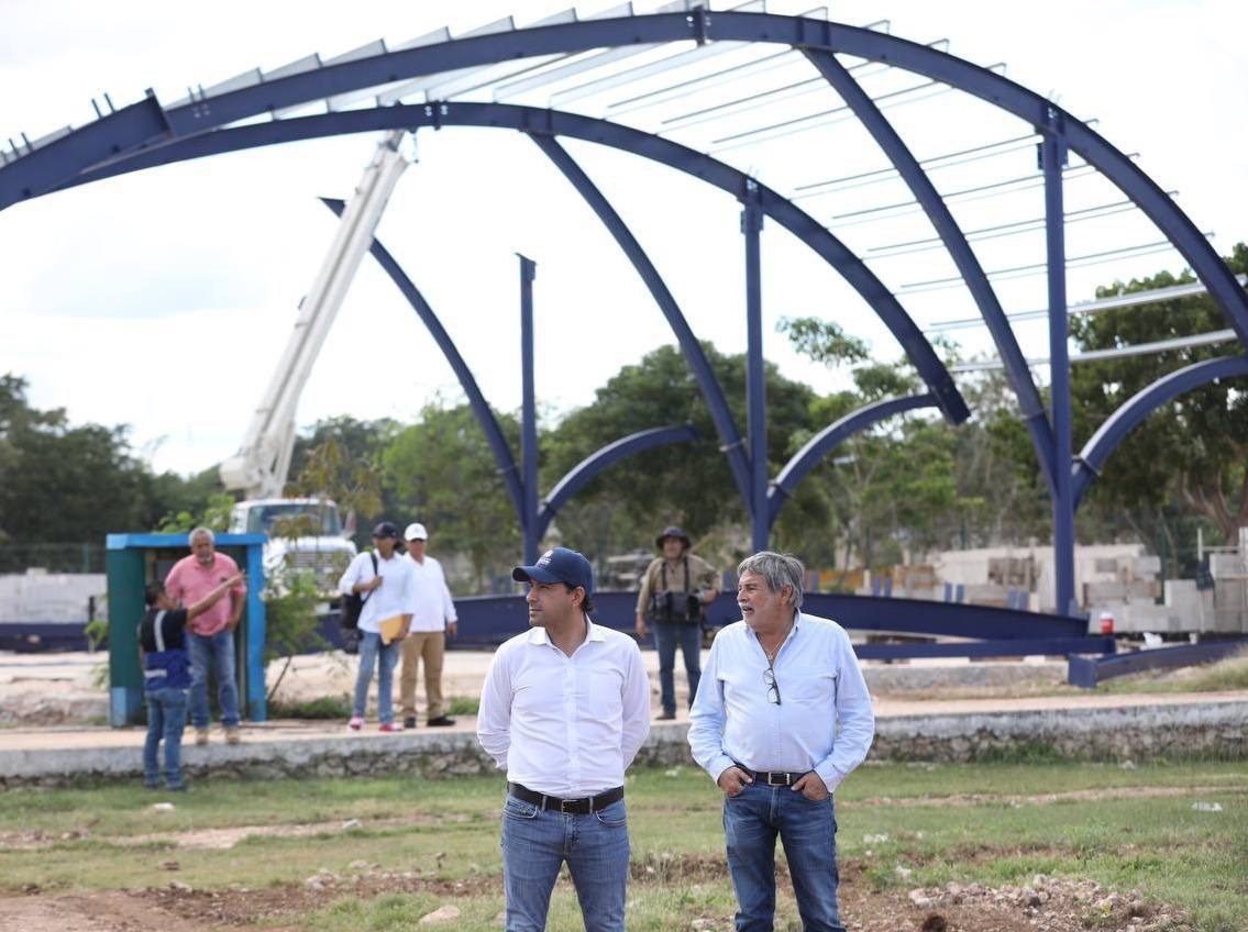 Acompañado del director general del Instituto para el Desarrollo y Certificación de la Infraestructura Física Educativa y Eléctrica de Yucatán (Idefeey), Luis Jorge Montalvo Duarte y del director general del Instituto del Deporte (IDEY), Jorge Antonio Esteban Abud; Vila Dosal recorrió el área de construcción en la colonia San José Tecoh, donde ya se encuentran instaladas grandes estructuras en las distintas áreas que conformarán este nuevo sitio recreativo.