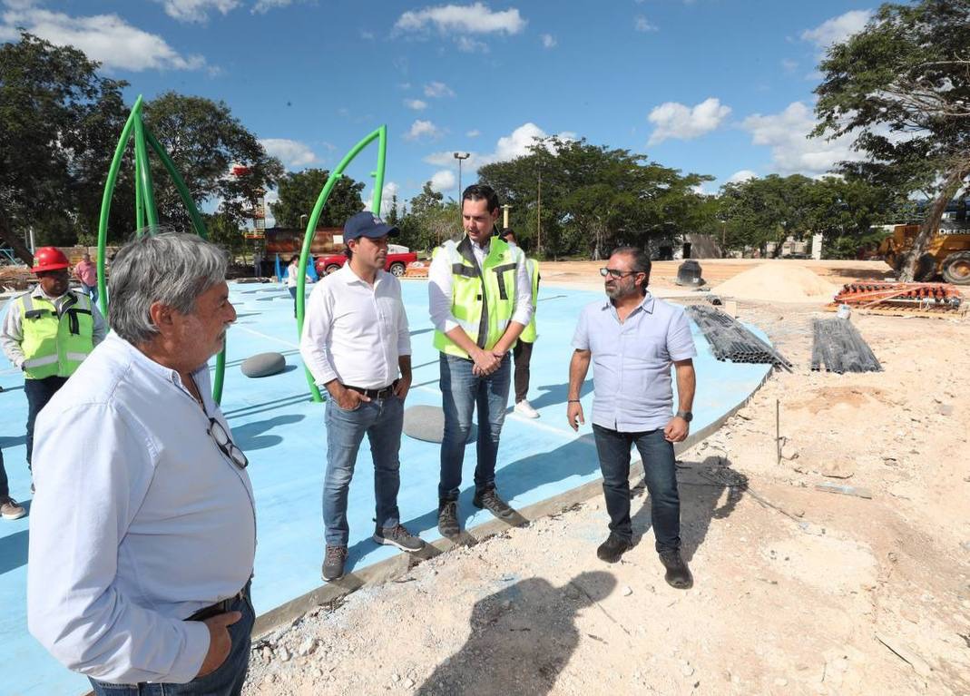 Acompañado del director general del Instituto para el Desarrollo y Certificación de la Infraestructura Física Educativa y Eléctrica de Yucatán (Idefeey), Luis Jorge Montalvo Duarte y del director general del Instituto del Deporte (IDEY), Jorge Antonio Esteban Abud; Vila Dosal recorrió el área de construcción en la colonia San José Tecoh, donde ya se encuentran instaladas grandes estructuras en las distintas áreas que conformarán este nuevo sitio recreativo.