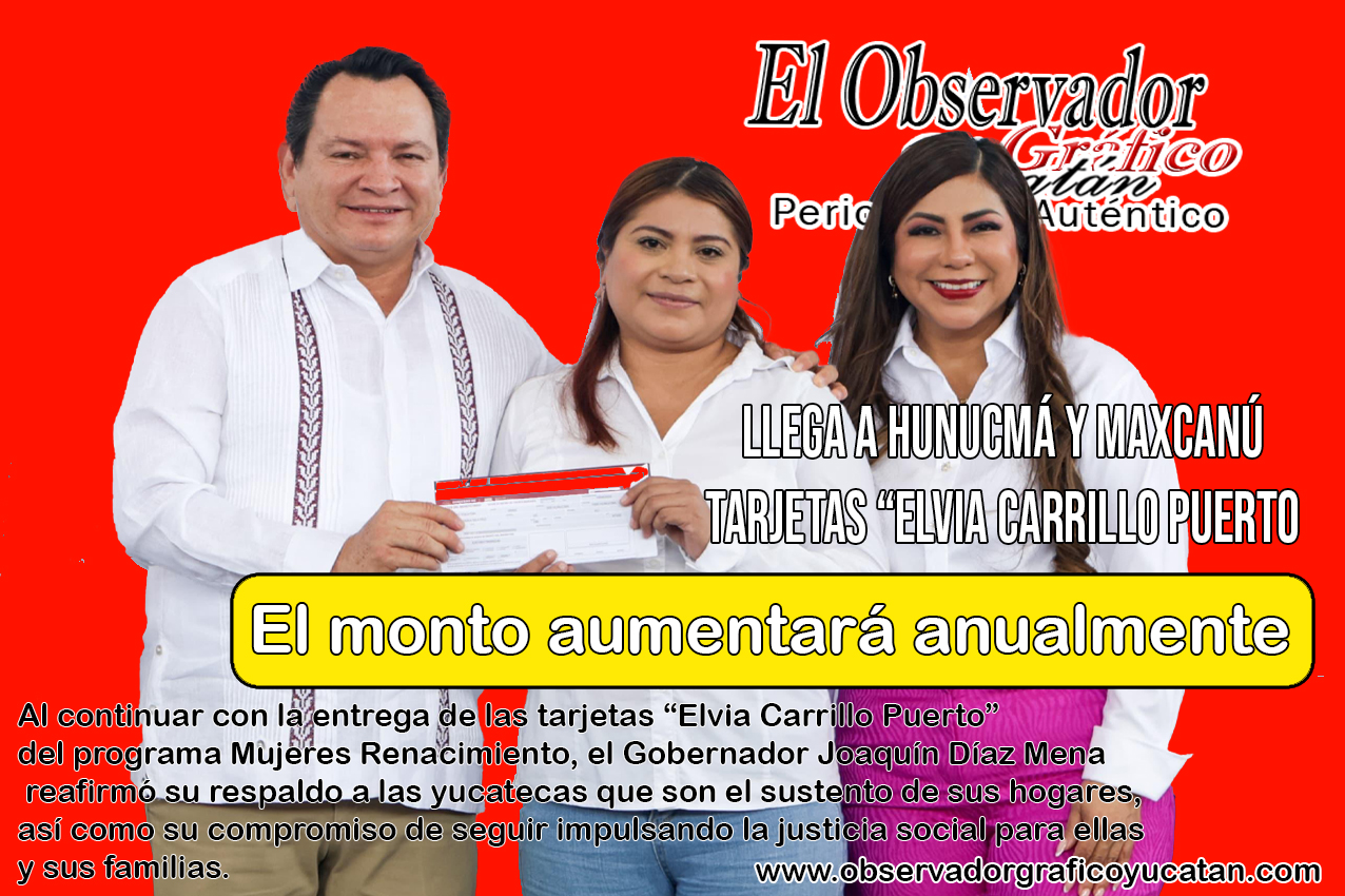 Al continuar con la entrega de las tarjetas “Elvia Carrillo Puerto” del programa Mujeres Renacimiento, el Gobernador Joaquín Díaz Mena reafirmó su respaldo a las yucatecas que son el sustento de sus hogares, así como su compromiso de seguir impulsando la justicia social para ellas y sus familias.