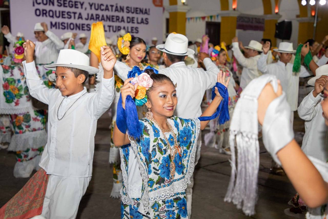 La Orquesta Jaranera de las Misiones Culturales de la Secretaría de Educación del Gobierno del Estado, continúa presentándose en los municipios, llenando los espacios públicos de las tradiciones y costumbres yucatecas.