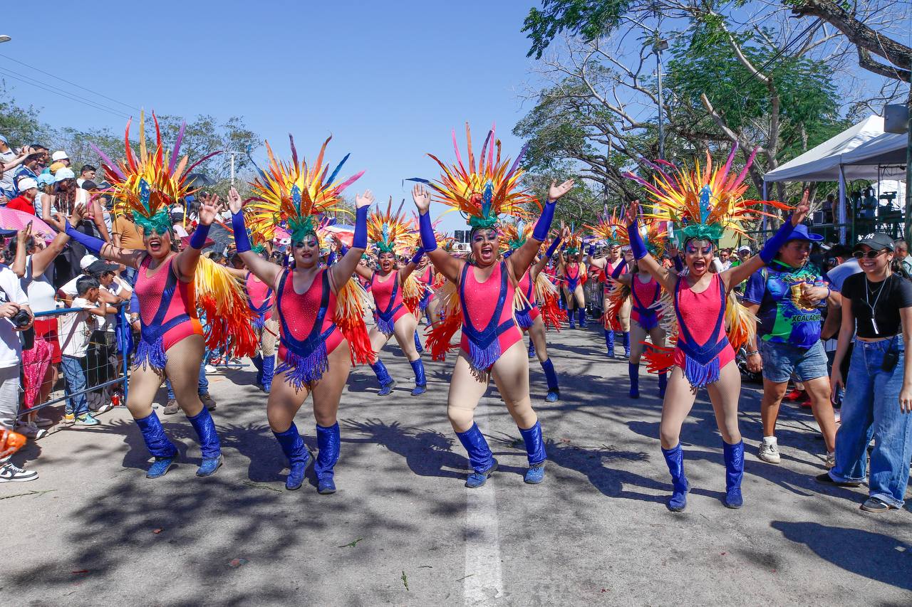 La algarabía de las comparsas, carros alegóricos y demás participantes contribuyeron al entusiasmo y la emoción de los asistentes, quienes recibieron miles de souvenirs llenando el recinto ferial de Xmatkuil con aplausos y gritos de júbilo en el último día de las actividades carnestolendas.
