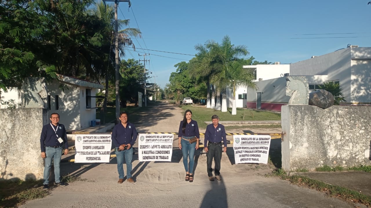 Los agremiados y trabajadores. Del Ejecutivo Local Sección 58, tomó las instalaciones de la Comisión Nacional Forestal (CONAFOR) con dirección calle 60 x 157 y 169 col. San José Tecoh II.