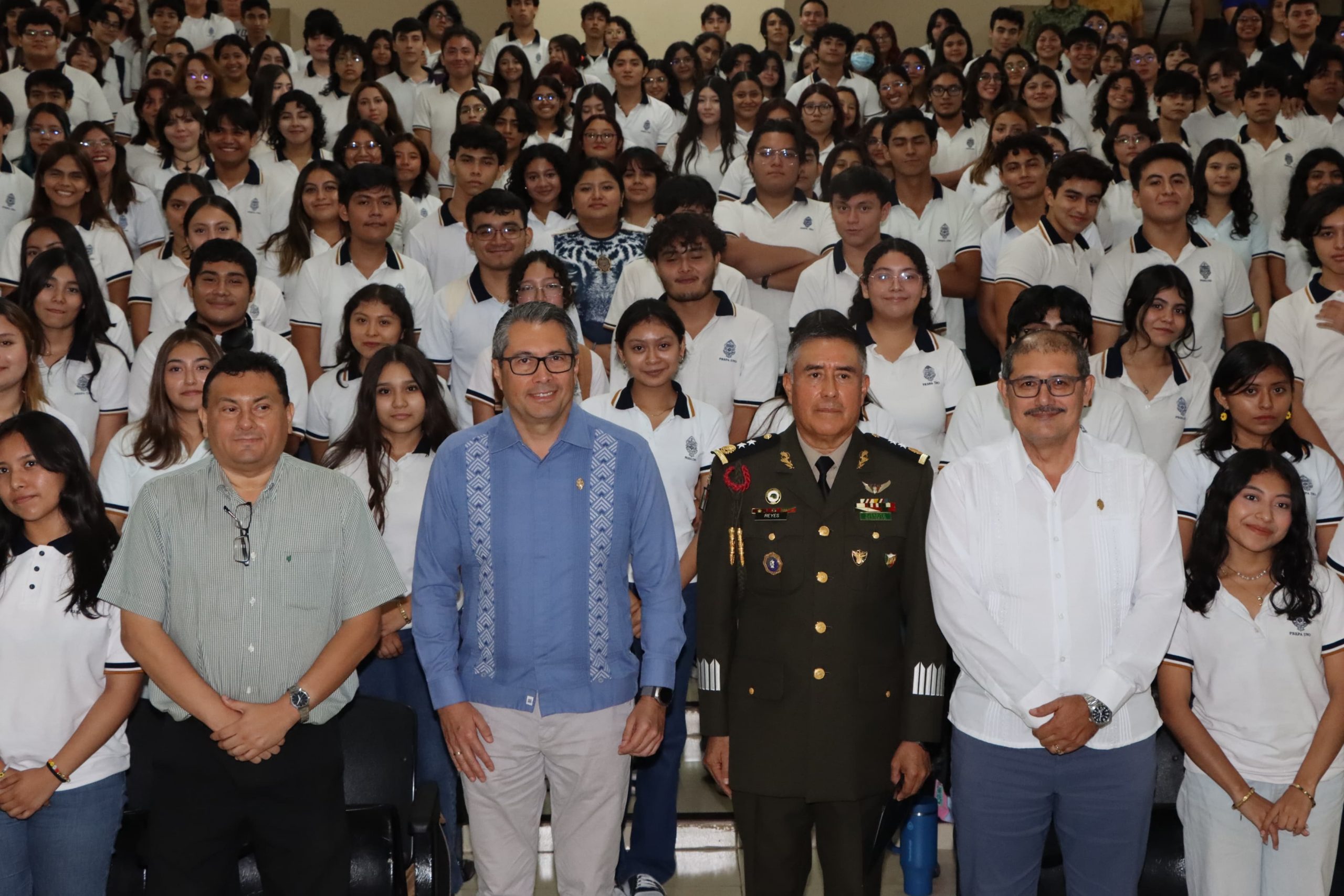 El General de Brigada de Estado Mayor, Bernardo Reyes Herrera, comandante de la 32/a Zona Militar, impartió la conferencia “Difusión de la Cultura de Seguridad Nacional” a estudiantes, académicos y directivos de la Escuela Preparatoria Uno de la Universidad Autónoma de Yucatán (UADY).