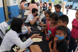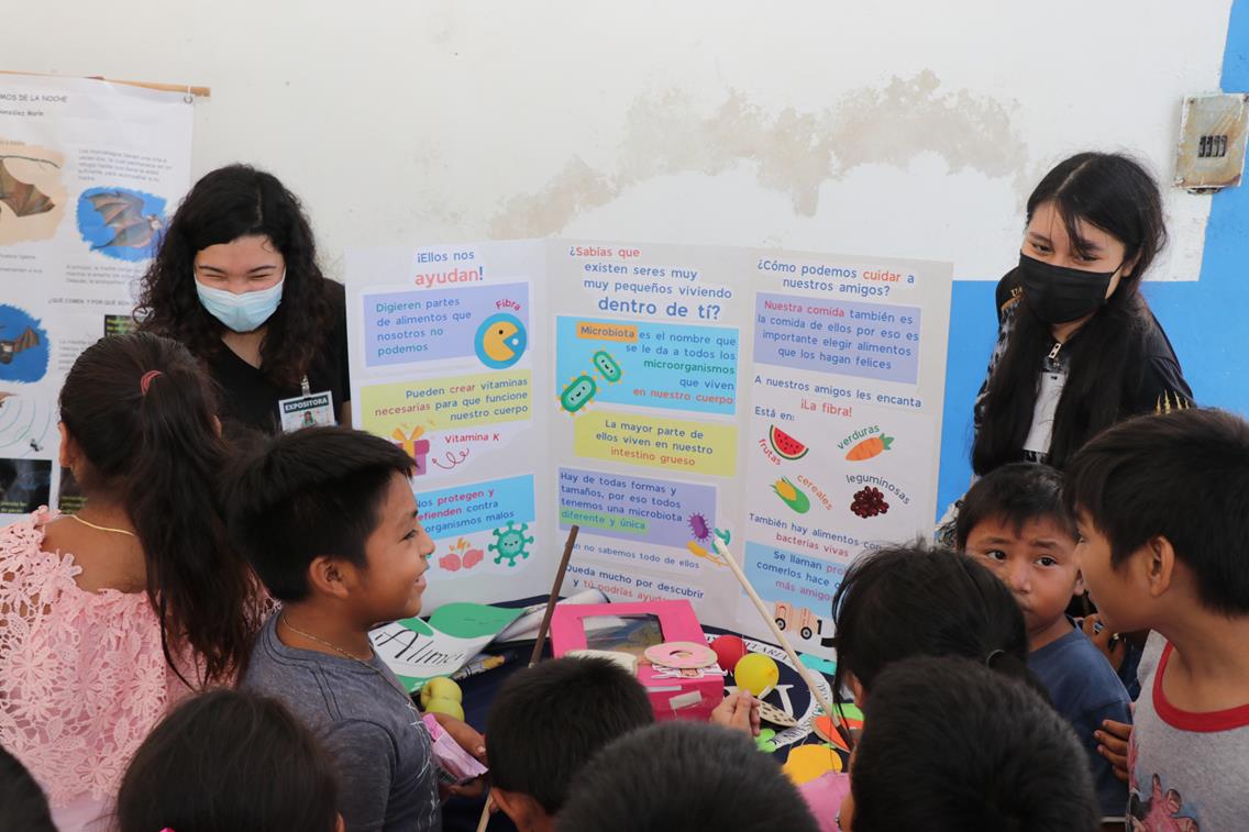 Durante dos horas en cada comunidad, las niñas y niños pudieron conocer el funcionamiento de su cuerpo, los alimentos saludables, cómo funciona un robot, dibujar y ver constelaciones, entre otros juegos.
