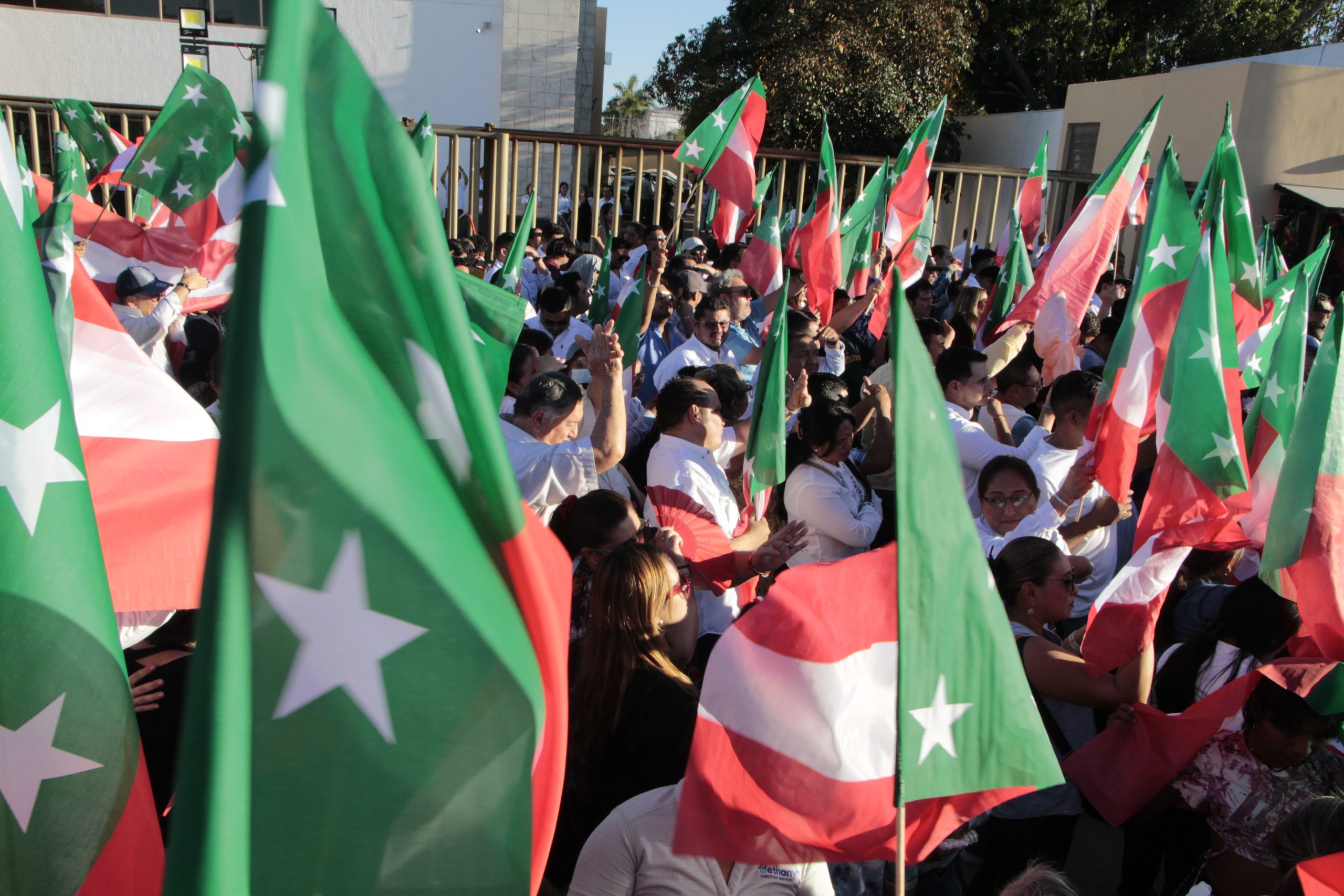 Por cierto llamo mucho la atención que los militantes asistentes no ondeaban las tradicionales banderas de cada Partido Político, en su lugar fueron miles de la Bandera de Yucatán.