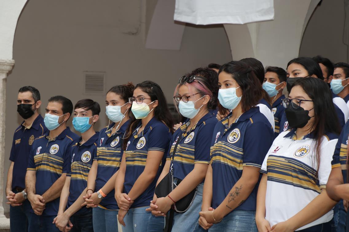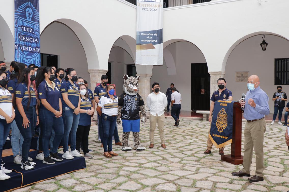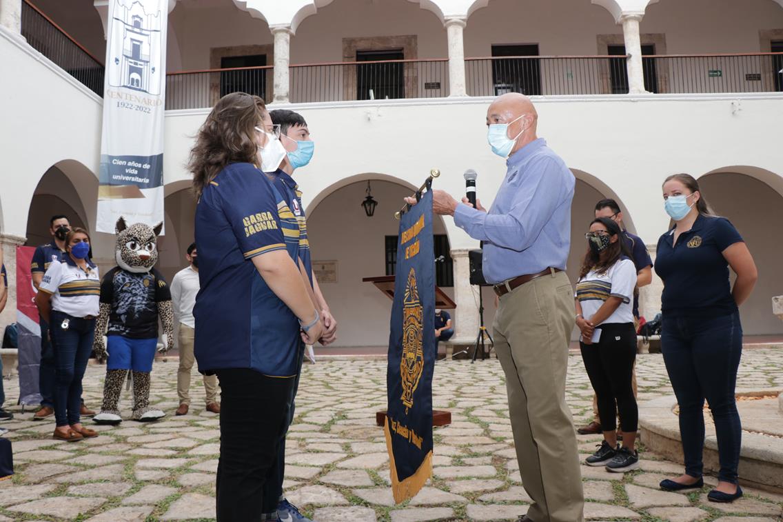 “Este estandarte representa a todos los universitarios, estoy seguro de que pondrán en alto el nombre de la Universidad y darán su mayor esfuerzo por defender los colores y la garra jaguar”, apuntó.