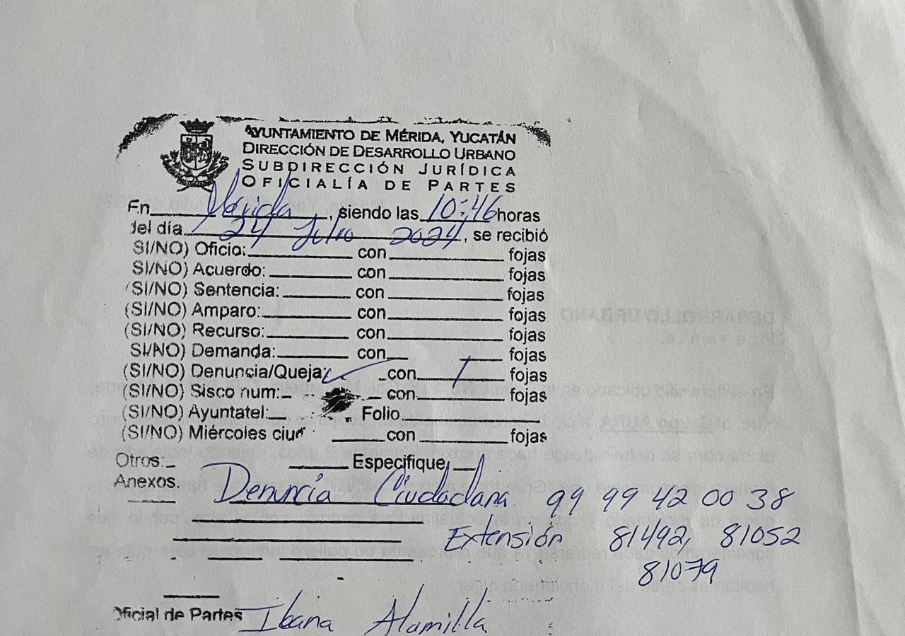 24.julio.24. Presenté escrito a Desarrollo Urbano y no hubo respuesta.