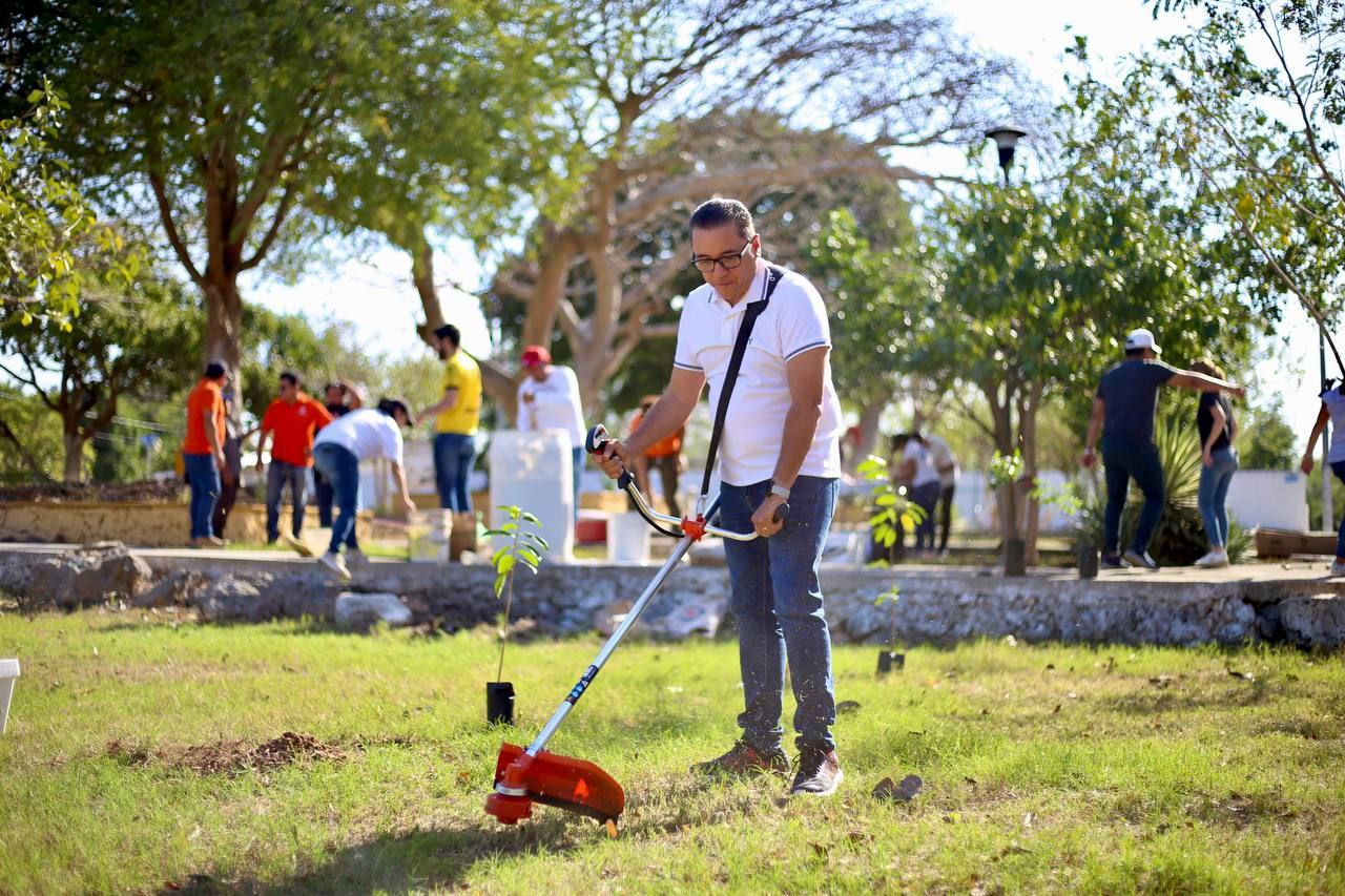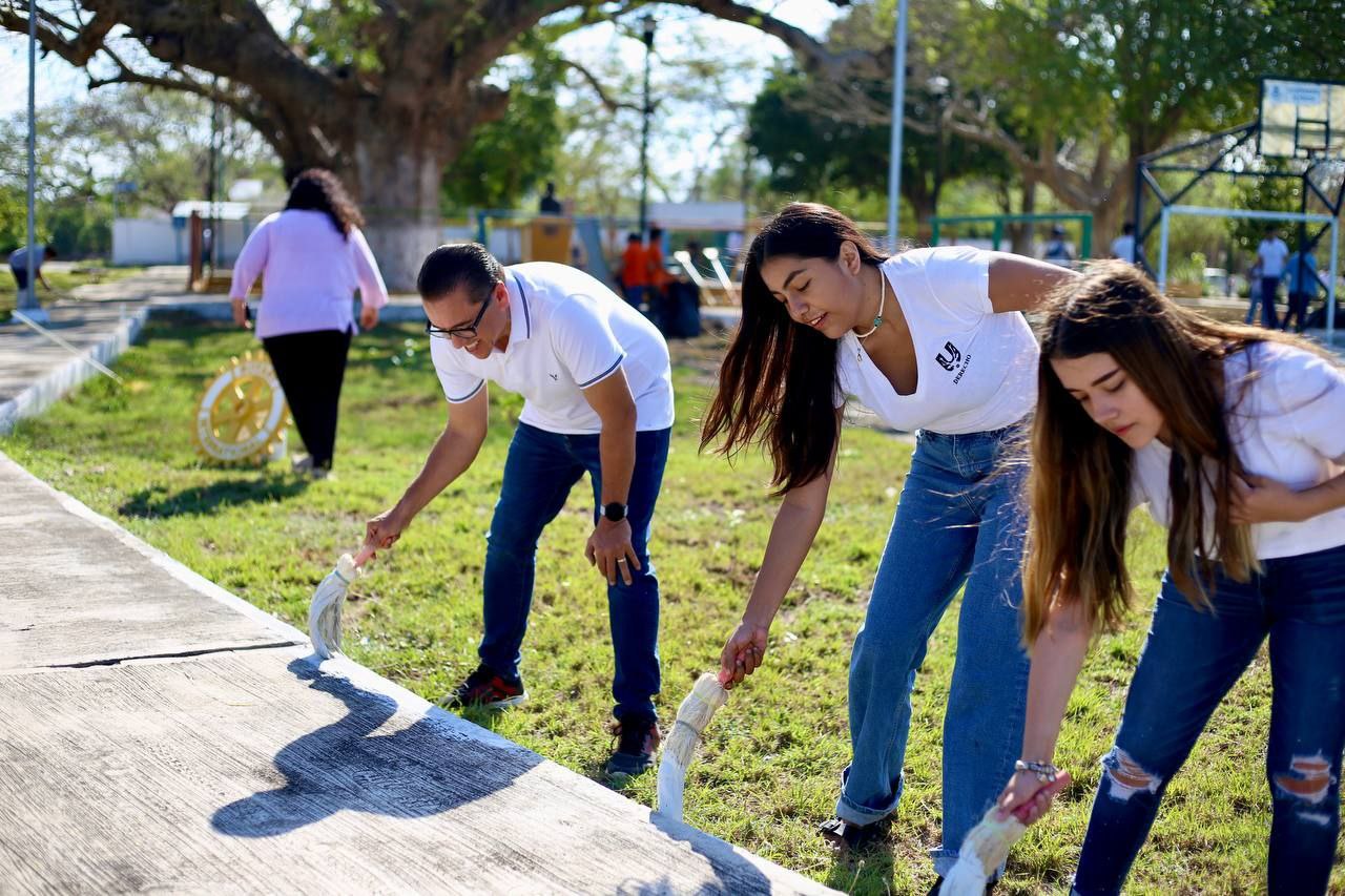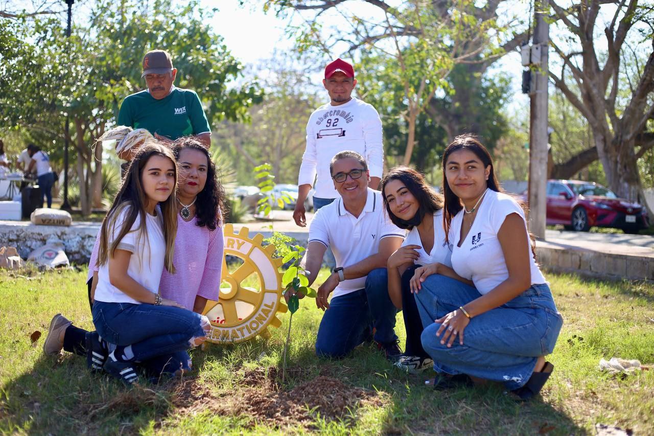 Acompañado de integrantes del Club Rotario de Meridanas, el diputado Víctor Hugo Lozano Poveda encabezó los trabajos de limpieza, pintura y reforestación de áreas verdes del parque de la comisaría de Santa María Chi.