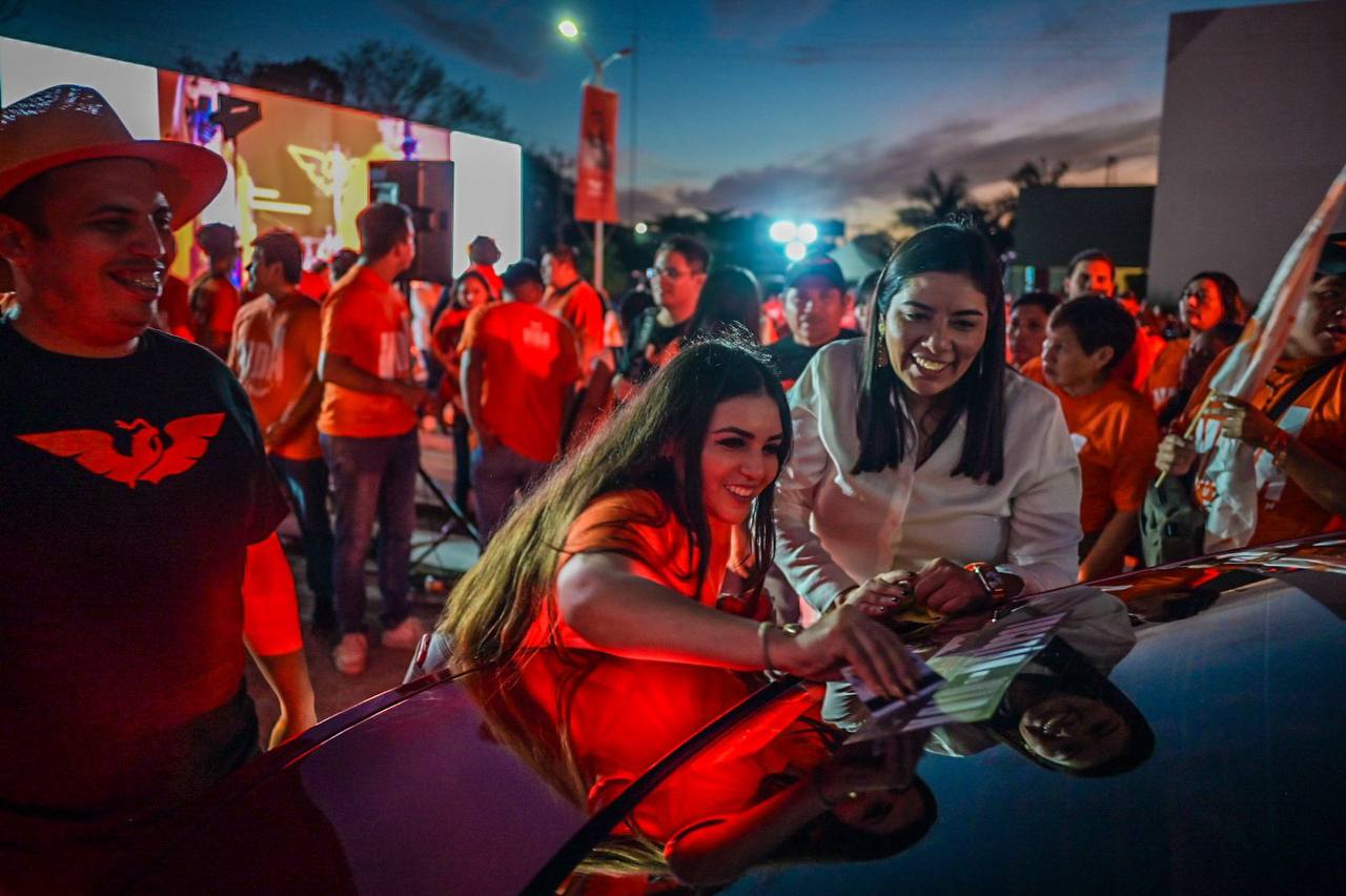 Acompañada de precandidatas y precandidatos a senadores, alcaldes, diputados locales y federales, así como de cientos de jóvenes que contagiaron optimismo y alegría, Vida encabezó la jornada de pega de calcas a cientos de vehículos de militantes y simpatizantes, mientras la banda de música animaba el ambiente con el mensaje: “el futuro está en tus manos”.