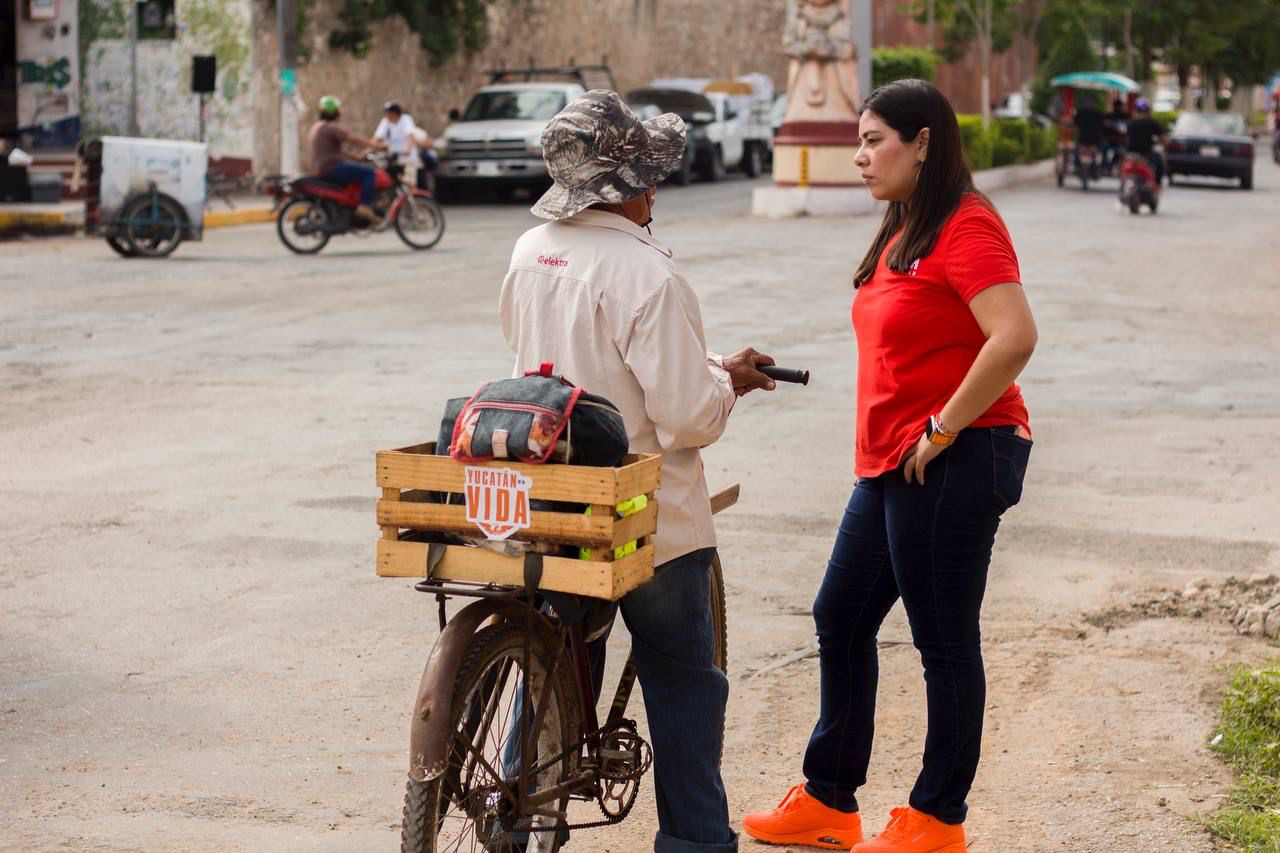 Vida Gómez comparte con pobladores de Ticul el mensaje de alegría por el cambio en Yucatán.