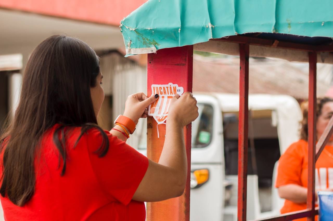 En Ticul la precandidata única de Movimiento Ciudadano a gobernadora de Yucatán, Vida Gómez Herrera, encabezó la pega de calcas y reparto de volantes, y compartió el mensaje de la alegría, que suma cada día a más personas en nuestro Estado.
