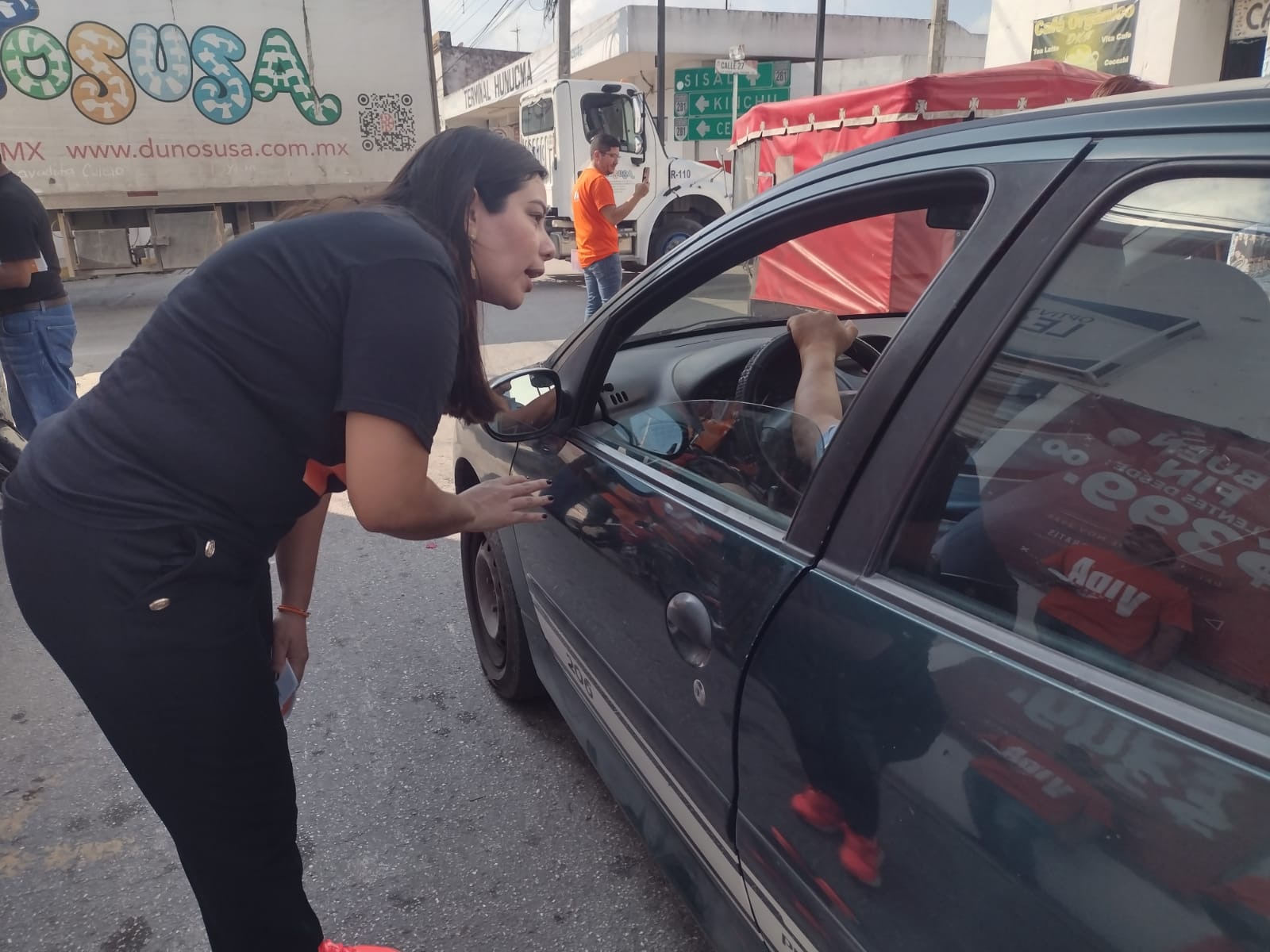 Movimiento Ciudadano enciende la alegría por un mejor futuro en Hunucmá durante el volanteo y pegado de calcas que encabezó Vida Gómez Herrera, precandidata única de MC a la gubernatura de Yucatán.