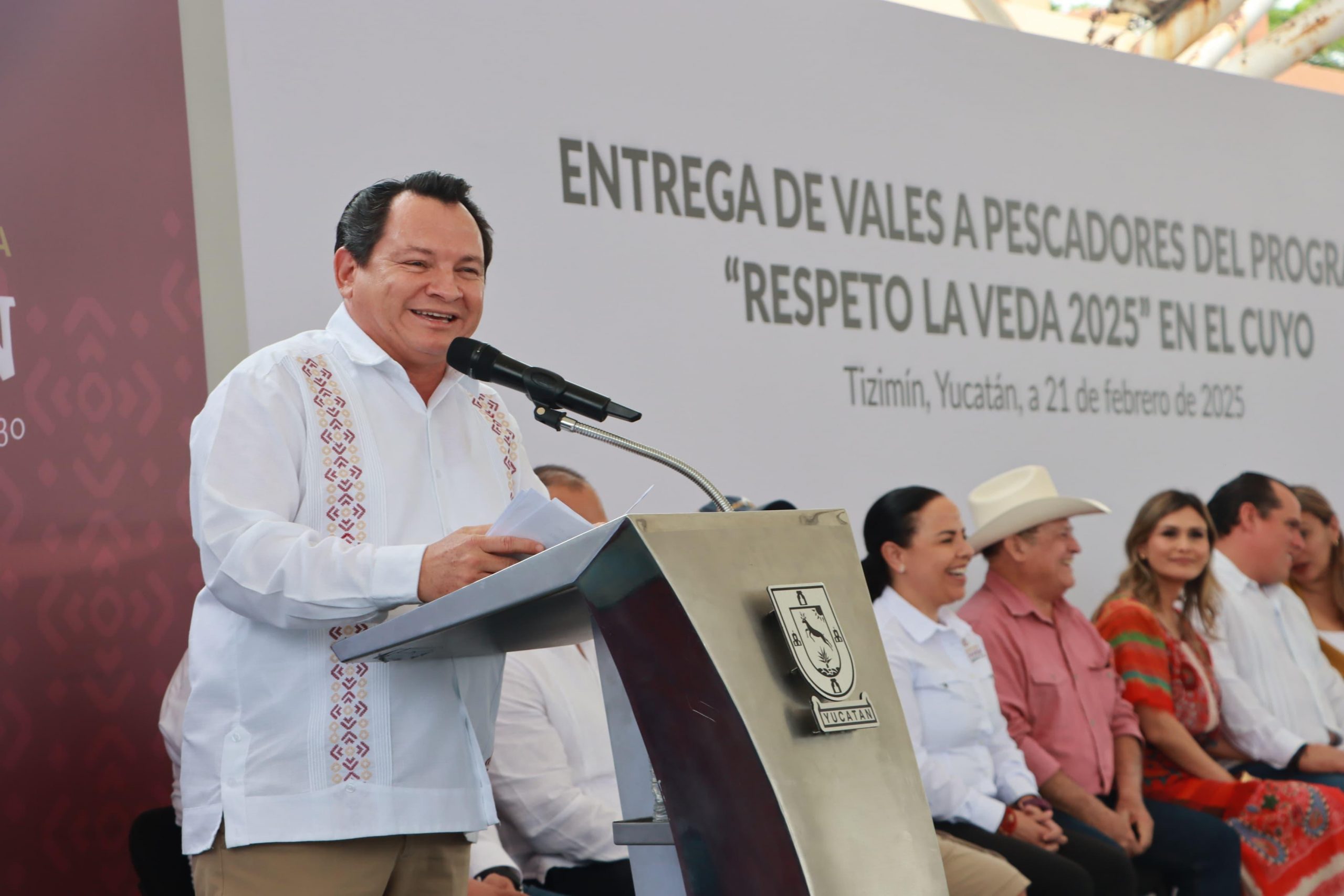 Al comenzar la entrega del primer pago del programa Respeto la Veda 2025 a 802 pescadores en el puerto de El Cuyo, el gobernador Joaquín Díaz Mena refrendó su anuncio de que este apoyo aumentará un 10% cada año; “Este esfuerzo lo hacemos con la convicción de que la pesca no es solo una actividad económica; la pesca es una forma de vida que merece todo nuestro respeto”, aseveró.