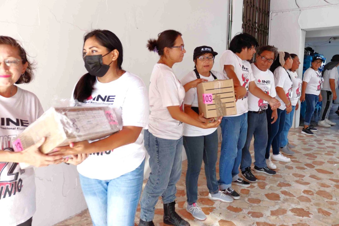 Para cada una de las hasta ahora 2 mil 971 casillas proyectadas, se recibe documentación electoral como: actas de las y los electores en tránsito para casillas especiales, avisos de localización de casilla, bolsas para actas, carteles informativos, portagafetes para el funcionariado de casilla, sobres para expedientes de casilla y lista nominal.