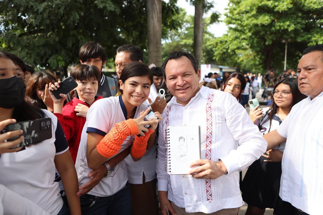 Acompañado de la presidenta del Sistema para el Desarrollo Integral de la Familia (DIF) Yucatán, Wendy Méndez Naal, señaló que, ante la falta de infraestructura en los planteles de la entidad, la presidenta Claudia Sheinbaum, a petición del gobernador, autorizó que el programa La Escuela es Nuestra incluya a los Colegios de Bachilleres.