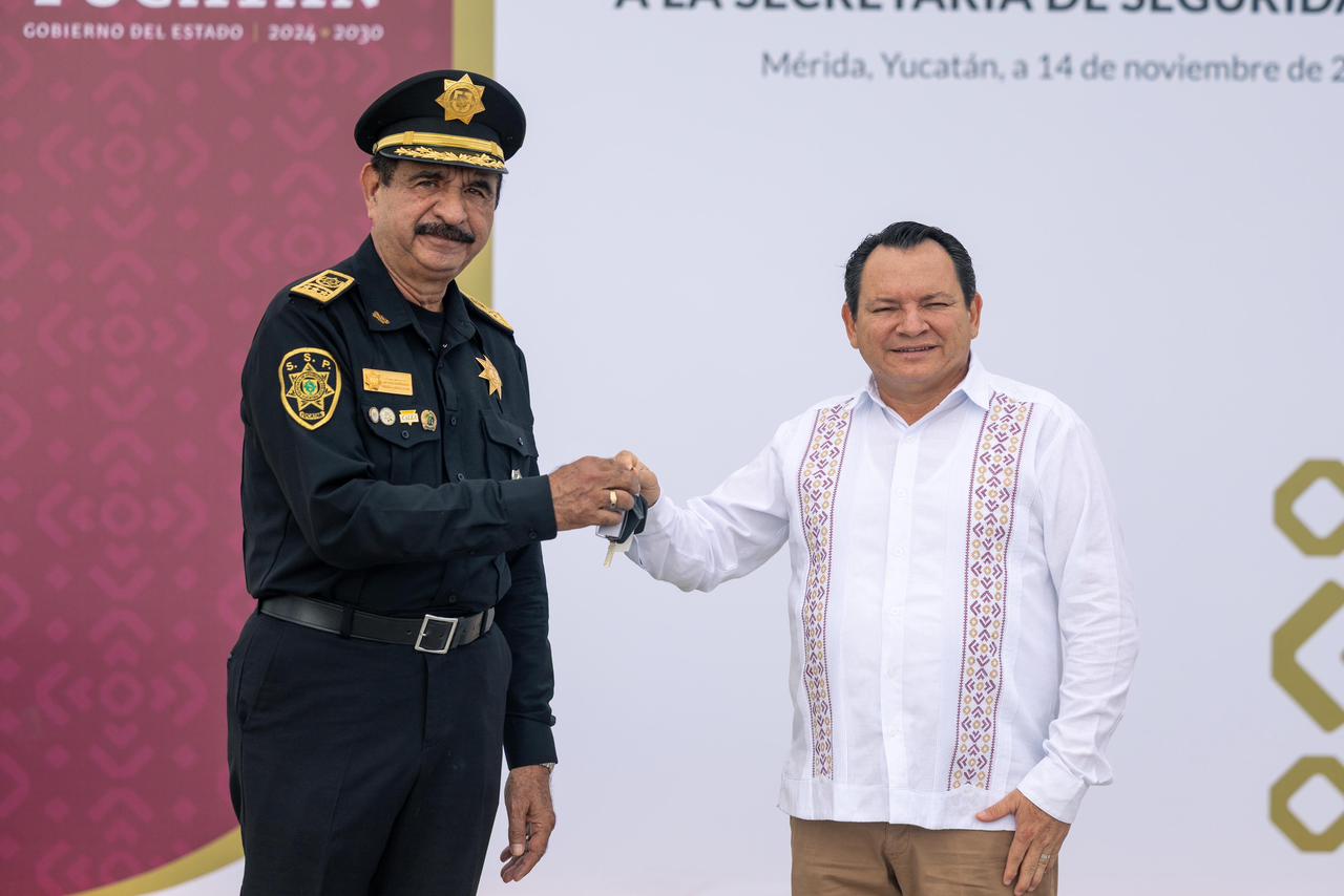 “Desde el inicio de nuestra administración dijimos que no vamos a escatimar esfuerzos ni recursos para dotar a nuestra policía estatal del equipamiento necesario para cuidar la seguridad de las y los yucatecos, como lo han hecho hasta el día de hoy”, afirmó el mandatario estatal.