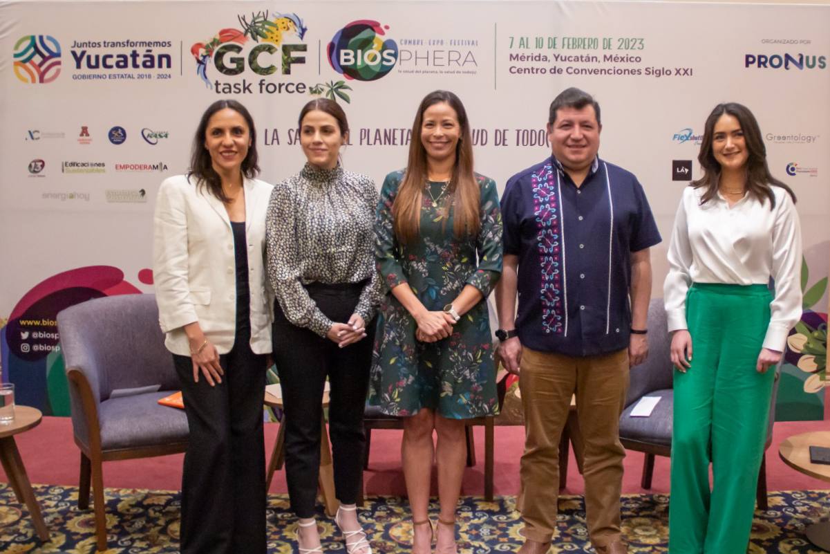Manuel Redondo, presidente de FIRA Barcelona México y Pronus; Silvia Llamas Prado, coordinadora del GCF Task Force en la República, y Melissa Rojas, titular de Biosphera, ofrecieron detalles sobre la doble convocatoria, que juntará a más de 80 conferencistas, 150 organizaciones y la representación de 50 gobiernos, provenientes de diversos países del orbe.