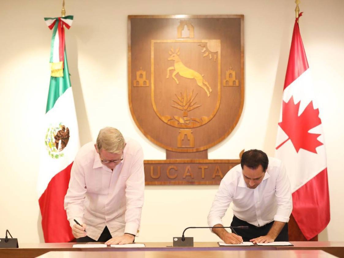 Yucatán y Canadá refuerzan lazos de cooperación al firmar el Gobernador Mauricio Vila Dosal y el Embajador de Canadá en México, Graeme C. Clark, un convenio de colaboración con el que ratifican el compromiso de continuar el trabajo coordinado con el objetivo de generar más oportunidades que eleven la calidad de vida de las y los yucatecos.