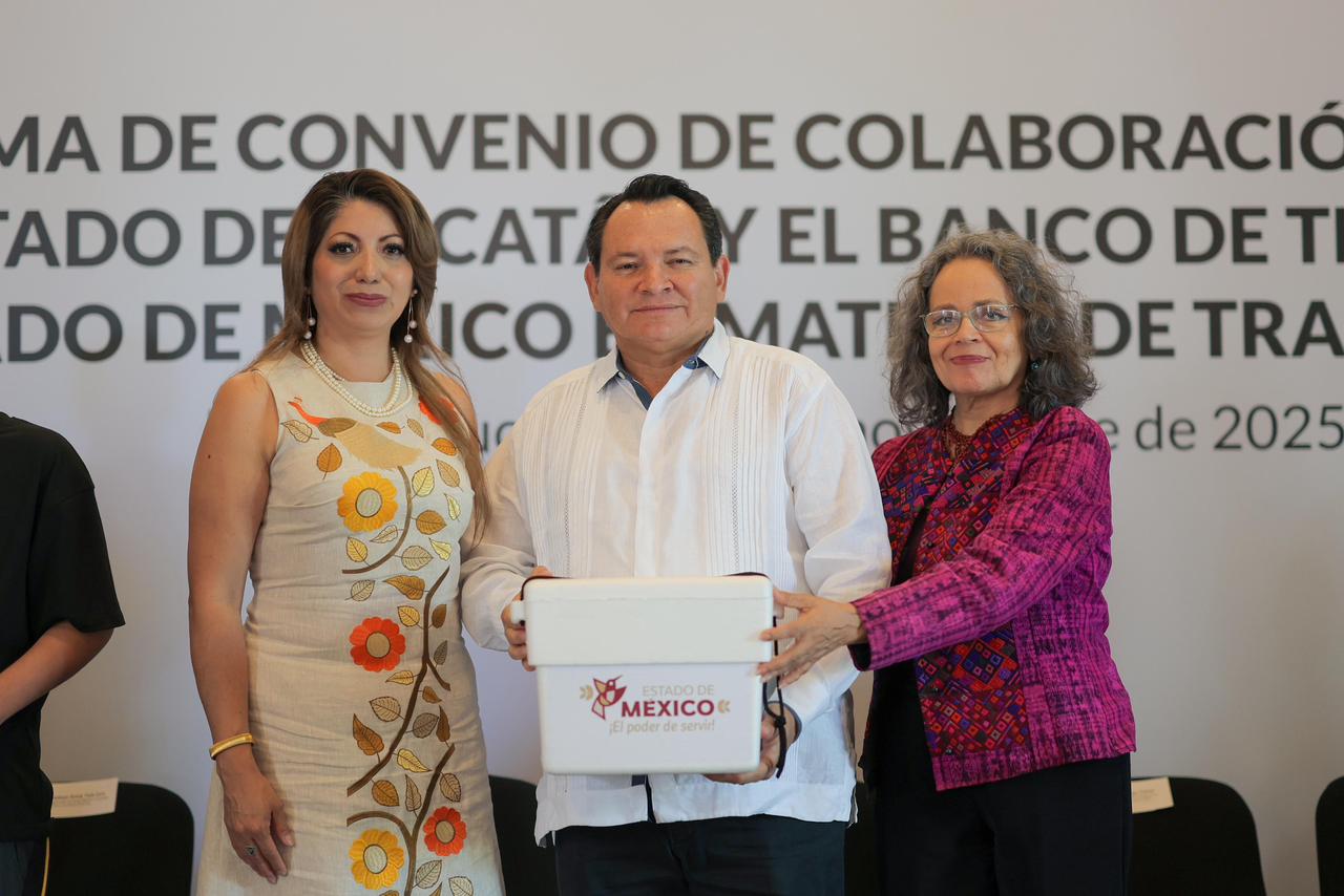 El Gobernador Joaquín Díaz Mena encabezó la firma del Convenio de Colaboración en Materia de Procuración, Procesamiento, Almacenamiento y Suministro de Piel, Tejido Musculoesquelético y Tejido Amniótico entre el Gobierno del Estado y el Banco de Hueso del Estado de México, con lo que se consolida una alianza interinstitucional que permitirá a las yucatecas y yucatecos acceder a tratamientos de alta especialidad sin tener que salir del estado.
